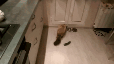 網(wǎng)上的貓會被黃瓜或香蕉嚇飛動態(tài)圖,都有一個共同點,就是趁貓咪不注意的時候放黃瓜嚇貓咪,這些黃瓜都是原來沒有出現(xiàn)在貓咪視野里的。如果你家里有貓,你試著慢慢出現(xiàn)在貓咪眼前,然后拿出黃瓜或者香蕉,你就會發(fā)現(xiàn),貓咪壓根就不想搭理你,也不會被嚇一大跳。