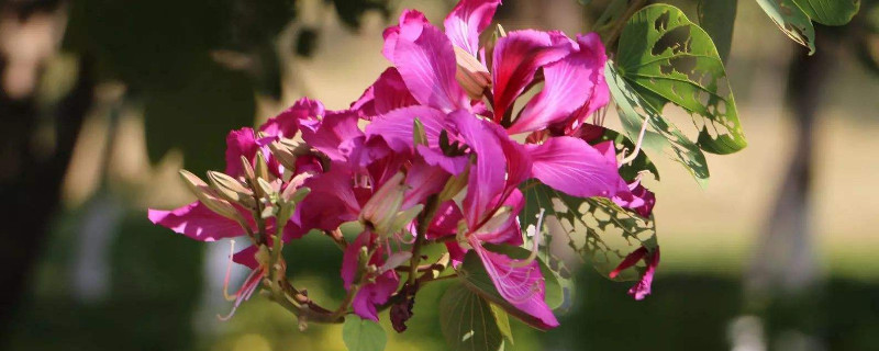 紫荊花是豆科紅花羊蹄甲屬喬木植物,它的學(xué)名是紅花羊蹄甲,還被人們稱(chēng)作為洋紫荊,因?yàn)樗娜~子在頂端會(huì)裂成兩半,形狀特別像羊蹄甲,而它的花朵顏色為紅色或者紫紅色,所以才被取名為紅花羊蹄甲。