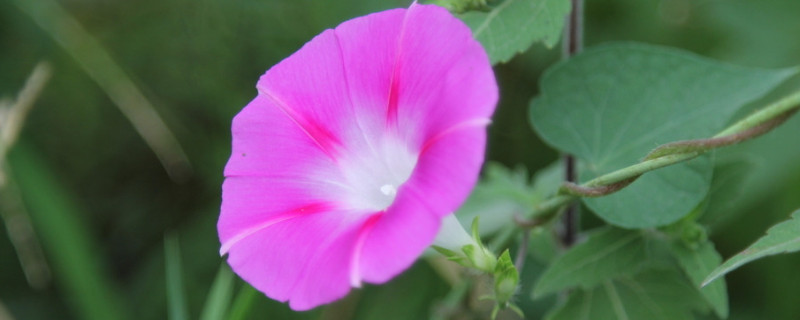 牽?;ㄊ切茽颗俚囊荒晟p繞草本植物,它的莖上被倒向的短柔毛及雜有倒向或開展的長硬毛,葉子形狀為寬卵形或近圓形,而且有深或淺的3-5裂,它的花期一般在夏季,花朵狀如喇叭,花色十分豐富。