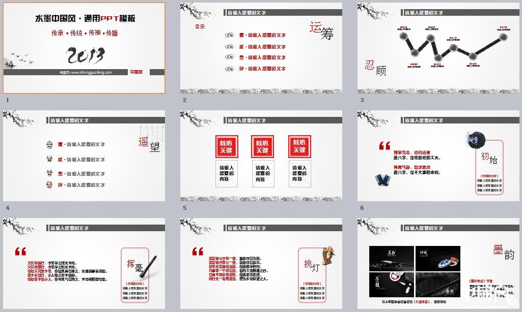 水墨福連文苑通用PPT模板
