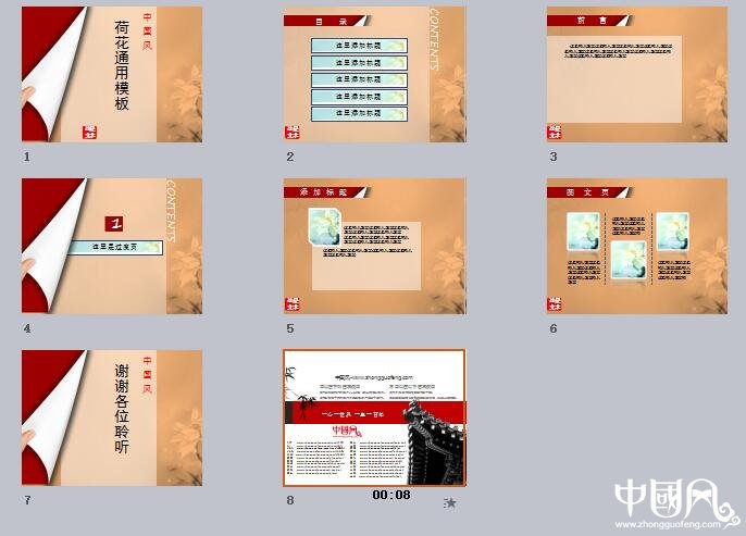 創(chuàng)意翻書(shū)式福連文苑荷花ppt模板