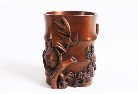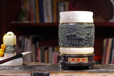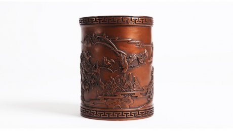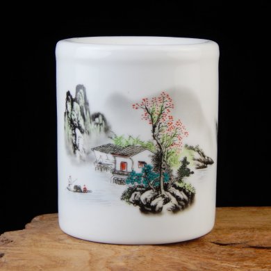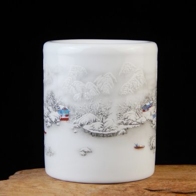 筆筒,盛置擱筆,精美雅致,歷來受人喜愛,請欣賞福連文苑小編為你帶來的薄胎雪景筆筒?!?/p>