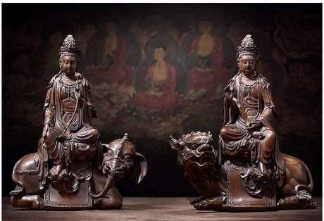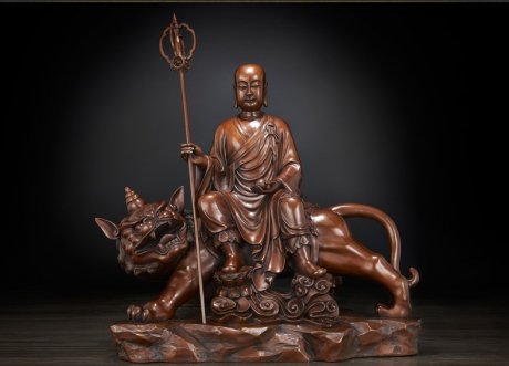 地藏王菩薩一手捧珠,一手拿錫杖,性格刻畫栩栩如生,色澤富貴古雅。火焰紋背光是帶有濃厚藝術(shù)色彩的裝飾紋樣,蘊含了吉祥昌盛的美好寓意,是我國佛像藝術(shù)形式中不可缺少的組……