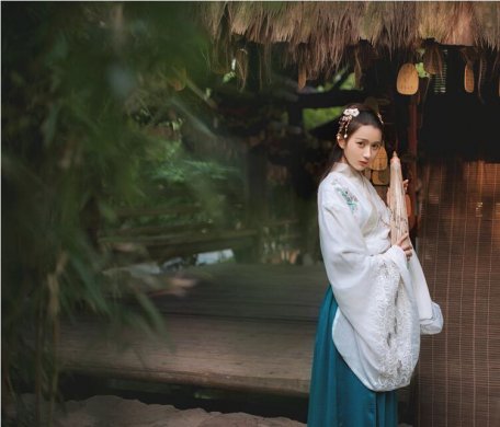 這款為交領(lǐng)襦裙,配大袖衫。名為【南歌子】。疏雨池塘見(jiàn),微風(fēng)襟袖知,水霧配色的清新,足以吹散整個(gè)夏日的炎熱,衣袂飄搖,宛如畫(huà)中走出一般。福連文苑小編為你帶來(lái)漢服日常女……