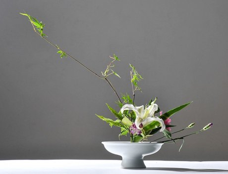 一花一世界 一葉一如來。簡潔大氣的陶瓷玉凈瓶,配上一枝簡單的花藝,韻味十足!下面福連文苑小編為你帶來插花藝術(shù):四款簡約中式插花?!?/p>