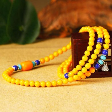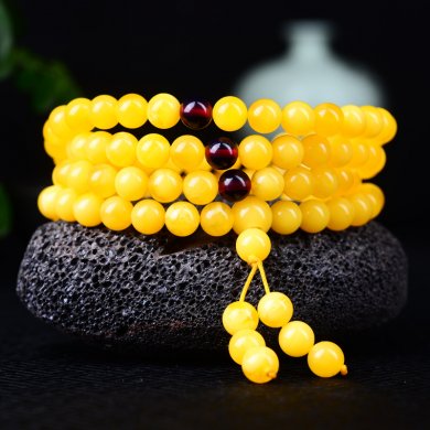 紅塵中,誰持一縷馨香,經(jīng)久不散,鬧事里,唯存一份從容,清雅千年,這便是蜜蠟的魅力,請(qǐng)欣賞福連文苑小編為你帶來的108顆蜜蠟佛珠手鏈?!?/p>