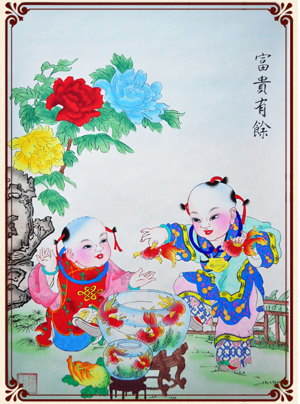 綿竹年畫(huà)中的童子圖內(nèi)容廣泛,形式多樣,多寓意為福壽美滿,繁榮昌盛、財(cái)源廣進(jìn)、富貴平安、如意吉祥等;人物雖然夸張變形,但是線條古樸流暢,精美絕倫,栩栩如生,色彩艷而不……