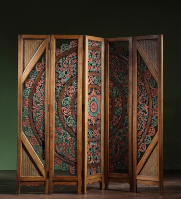 屏風(fēng)一般陳設(shè)于室內(nèi)的顯著位置,起到分隔、美化、擋風(fēng)、協(xié)調(diào)等作用。它與古典家具相互輝映,相得益彰,渾然一體,成為家居裝飾不可分割的整體,而呈現(xiàn)出一種和諧之美、寧?kù)o之……