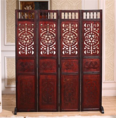 屏風(fēng)一般陳設(shè)于室內(nèi)的顯著位置,起到分隔、美化、擋風(fēng)、協(xié)調(diào)等作用。它與古典家具相互輝映,相得益彰,渾然一體,成為家居裝飾不可分割的整體,而呈現(xiàn)出一種和諧之美、寧靜之……