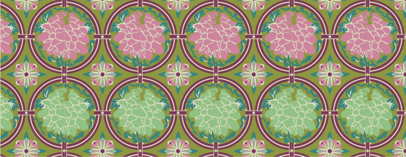 一朵朵精美牡丹花圖案,屹立在圓形圖案中,圓與圓之間又相互連接,構(gòu)成這幅傳統(tǒng)織錦圖案。中國織錦技術(shù)起源久遠,花紋絢爛,技藝成熟。下面福連文苑小編為你推薦中國傳統(tǒng)織錦牡丹花圖案與配色,矢量素材AI圖片。