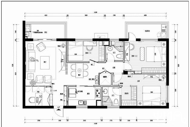 融僑花園三居室新中式施工圖cad圖庫(kù)
