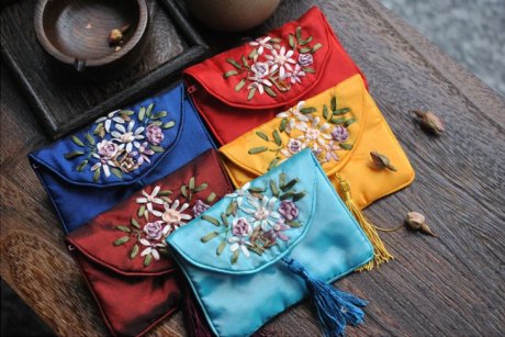 這款袋子每一個(gè)都很傳統(tǒng),很古意,也蠻值當(dāng)。這些老祖宗留下的顏色都非常蠻耐看,也非常端莊大氣的。袋子是用絲綢做的,古風(fēng)緞面的小首飾袋,手工絲帶繡花配小流蘇,精致婉約……