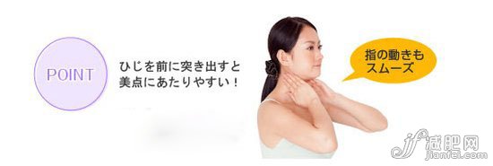 POINT 向前突出手肘的話,比較容易按到穴位哦! 手指的活動(dòng)也比較順暢