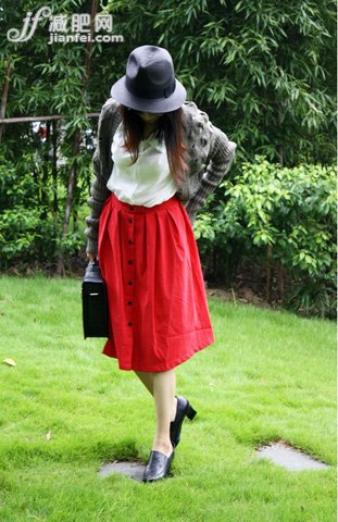 下半身穿紅色