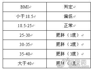 按照世界衛(wèi)生組織(WHO)的標(biāo)準(zhǔn),BMI在25-30為超重,大于等于30為肥胖,這是國(guó)際上通用的標(biāo)準(zhǔn)。一般認(rèn)為最理想的BMI是“22”。這是因?yàn)樵诖藸顟B(tài)下,人很少由于肥胖的原因而生病,從而能夠長(zhǎng)壽。因此,理想的體重是BMI為“22”時(shí)的體重。