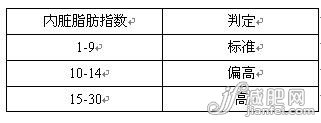 內(nèi)臟脂肪指數(shù)對(duì)肥胖的判定標(biāo)準(zhǔn)如下: