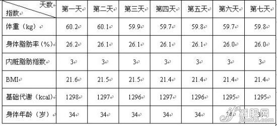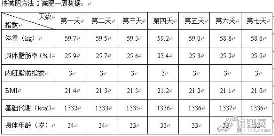 按減肥方法1減肥一周數(shù)據(jù):
