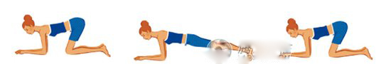 ⑴在地板上放置左右手臂和膝蓋,胳膊肘成直角彎曲,視線朝著地板。