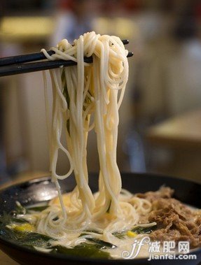 看起來(lái)份量很多的湯面,熱量實(shí)在比干面少很多,只要不放油蔥酥、肉沫,吃面也可以很‘享瘦’。建議吃湯面時(shí),請(qǐng)老板多放些青菜,面不一定要全部吃完,湯上層浮油要撈除。