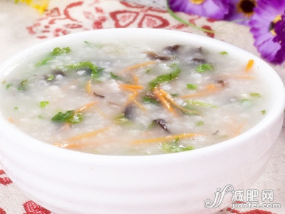 2、放入用粗紗布包好的干荷葉及烏龍茶再熬7~8分鐘,取出紗布即可食用。此粥有健脾、減肥的功效。
