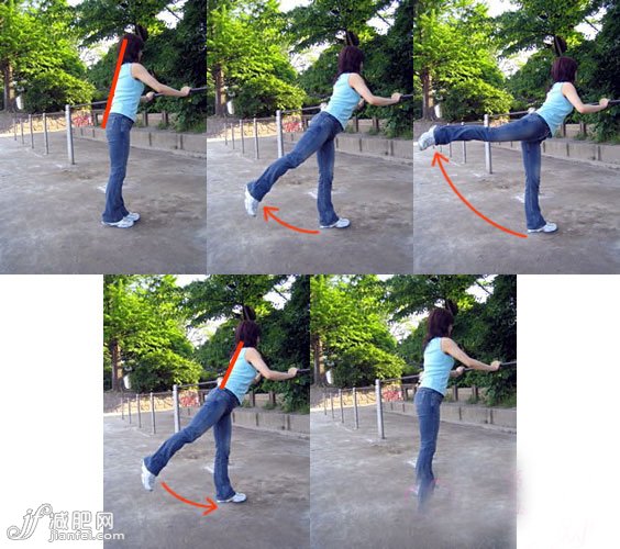 注意:在這里是手扶在鐵棍上,也可以換成墻,或者是被固定的椅背。
