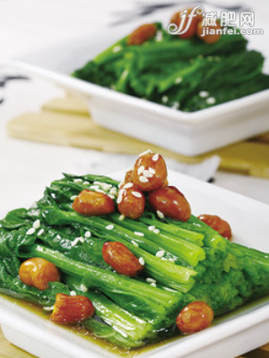 主料:嫩菠菜500、克花生米50克、胡蘿卜、菜花適量