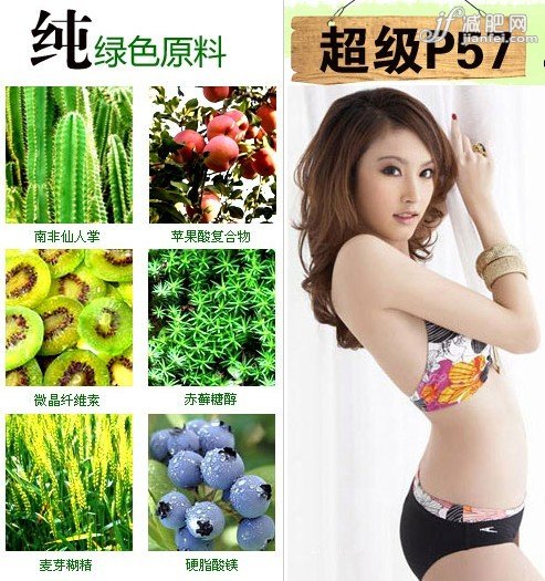 小編要推薦的方法不是節(jié)食也不是運動,炎熱的夏季還是最想好好的呆在屋子里吧?看看電視上上網(wǎng),吃吃零食吹空調(diào),這就是我們今年夏季減肥的主題——超級P57輕松嚼一嚼,立刻享瘦。這款減肥營養(yǎng)品是經(jīng)湖南衛(wèi)視一姐李湘傾情推薦的,它之所以是營養(yǎng)品而非藥品,是以為它是以南非仙人掌提取物、蘋果酸復(fù)合物、微晶纖維素等純天然植物精華作為原料,一邊快速減脂,一邊補充人體所需要的必需氨基酸和維生素。