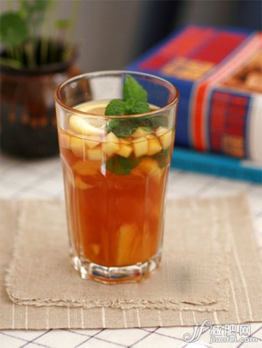 3、然后將紅茶包放入浸出顏色后取出 將鍋中煮好的水果紅茶倒入杯子中。
