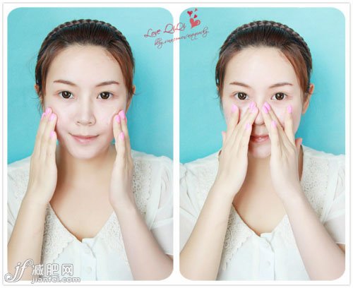 用雙手中指放在鼻翼兩側(cè),沿著鼻梁慢慢往上推,能強(qiáng)化鼻梁的立體感,消除臉部浮腫