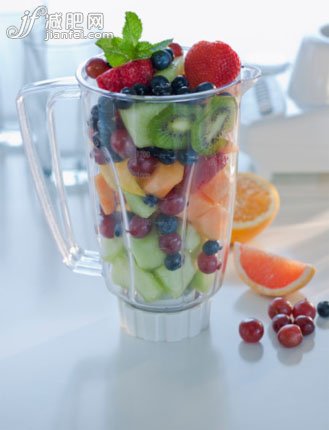 將獼猴桃削皮,蘋果去核去成小塊;先把薄荷葉放入榨汁機中打碎,然后再加入蘋果、獼猴桃一起打成汁即可。