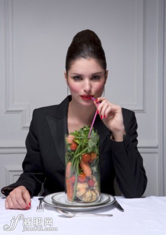 解析:“軟飲料易發(fā)胖,那就喝鮮榨果汁吧”——這絕對是錯誤觀念,榨果汁會過濾掉水果中豐富的纖維質(zhì),破壞果酸成分,讓本來健康的水果變成只有果糖和植物色素的水。