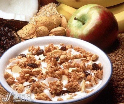 材料很簡單,10粒美國大杏仁+牛奶+水果。杏仁的熱量大概每10粒有100大卡左右,牛奶(加糖)250ml是120大卡,水果切塊食用可以減少食用量,一般熱量也在80卡左右。左右計算下來,一頓晚餐只有300大卡,而且杏仁的脂肪70%為單不飽和脂肪,容易被分解為熱量供能,不易堆積。