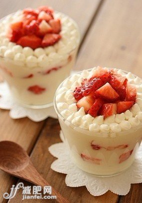 ■用透明的倒三角形狀的玻璃杯來裝,然后用勺子一口一口地吃,感覺超贊的哦!