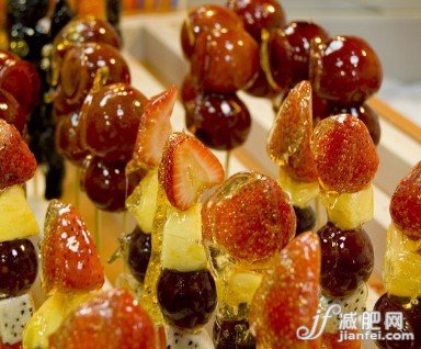 冰糖葫蘆是冬天經??吹降穆愤呅〕裕缃竦奶呛J可不局限在蘋果和山楂之間,還有橙子、青棗、獼猴桃等等制成的各種焦糖水果串。其實糖葫蘆本身熱量不高,因為大多數是新鮮水果,但是外層的糖衣是用大量白砂糖加色素熬制的,雖然凝固后能讓水果賦有獨特的口感和風味,卻也讓這些水果熱量飆升。但好在一串糖葫蘆的量并不多,而大多數女生吃一串就足夠了,水果本身也富含營養(yǎng)物質和纖維質,在減肥期間少吃一些是沒有問題的。