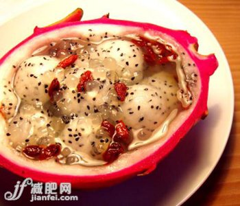 5.最后才放入火龍果球。翻一下,均勻了就可以上桌了。