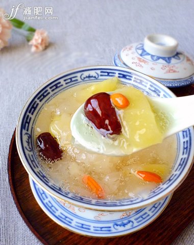 菠蘿銀耳羹的味道清甜,能夠滋養(yǎng)身體,排出毒素,促進(jìn)新陳代謝的運(yùn)行效率,同時熱量也非常低,餐前的幾個小時喝一碗銀耳羹可以有效的減少正餐的食量,幫助減肥。