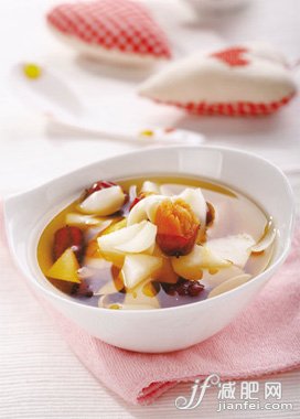 點(diǎn)評(píng):瘦肉的蛋白質(zhì)含量較高,脂肪含量低,而雪梨所含的熱量非常低,所以這款雪梨南杏瘦肉湯,不僅可以減肥,還可以清潤(rùn)心脾哦。