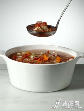 將洋蔥、胡蘿卜洗凈切絲,將芹菜切段,土豆切成塊狀,西紅柿剝皮后切塊。將干辣椒與洋蔥、胡蘿卜一同倒入鍋中翻炒片刻,接著將其他蔬菜一同倒入鍋中,再注入適量清水一同燉煮,待蔬菜變得軟爛后,添加些許鹽與香油即可。這款美味的什錦蔬菜湯能有效的促進(jìn)排毒,消除水腫,抑制脂肪增長等,常食用能輕松減肥哦。