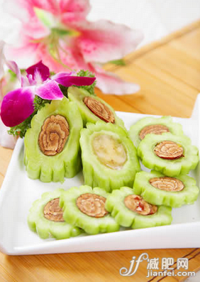 功效:苦瓜肉卷這個食物完全遵照均衡的飲食搭配來起到減肥瘦身的效果。這個食品既可以充分發(fā)揮著苦瓜減肥的最終效果,而且還可以幫助在初秋中起到良好的清熱解毒功效。而將苦瓜做成肉卷,更是可以做到營養(yǎng)均衡搭配,而且含有的脂肪也同樣是比較少的,這樣就可以達到明顯良好的瘦身目的。