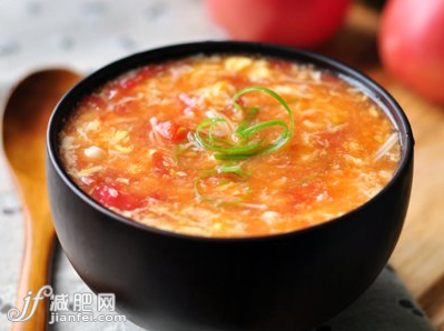 做法:清水、姜片煮滾,加入番茄片翻滾,再加入攪勻的蛋液即成。
