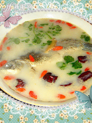 材料:鯽魚1條。醬油、蔥、姜、鹽、胡椒面、味精各適量、枸杞子若干