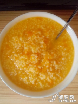 3.煮小米時,用攪拌機(jī)將南瓜打成泥(省略也行)。30分鐘后,加入南瓜同煮,繼續(xù)煮15分鐘即可,中間要時時攪一攪,避免粘鍋。