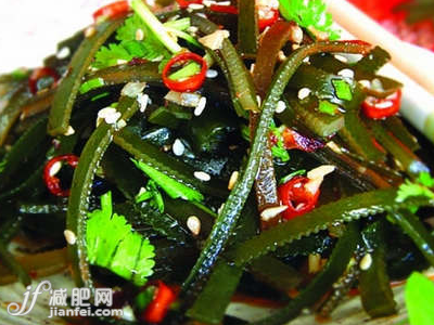 Tips:這道菜之所以適合作為健康減肥晚餐食譜,是因為它含有豐富的營養(yǎng),芹菜含有利尿有效成分,有利尿消腫的作用,還能清熱解毒,很適合肝火過旺而又想減肥的人食用。海帶的營養(yǎng)價值很高,它的粗蛋白、鈣、鐵的含量比菠菜、油菜高出幾倍、幾十倍。海帶含有大量的不飽和脂肪酸和食物纖維,能夠調順腸胃,熱量還很低,并且具有利尿消腫的作用,是減肥首選食物。