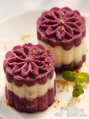 做法:紫薯、山藥蒸爛壓成泥,山藥泥拌入蜂蜜混合均勻,紫薯泥加入煉乳,可加入少許水;用模具壓好,最后一層山藥一層紫薯疊加擺盤;食用時(shí)可淋上沙拉醬、番茄醬等。