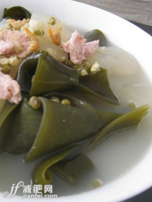 冬瓜具有消除體內(nèi)積水的作用,海帶則具有清除體內(nèi)膽固醇與脂肪的效果,適當(dāng)?shù)呢i肉能夠補(bǔ)充應(yīng)有的能量與蛋白質(zhì),所以,這是一款能夠美容、瘦身、減脂的湯。