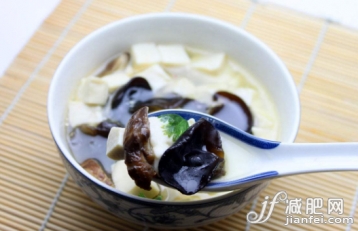 食材:黑木耳25克,豆腐200克,鹽少許。雞湯1碗。