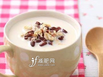 材料:燕麥30克、脫脂牛奶30克、紅豆50克、糖適量。
