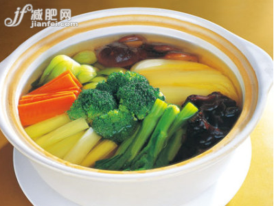 tips:蔬 菜鍋可算是新鮮的減肥晚餐啦,蔬菜種類很多而做法簡單,綠色蔬菜其實是可以按自己口味選擇的,只要不要選熱量高等不利于減肥的種類就行啦,冬瓜、小白菜、 海帶、苦瓜都是很好的選擇哦。另外,一定要注意量哦,雖然說是蔬菜鍋,但是材料也不能放太多,晚餐不應該吃得太飽,不然會延長消化時間,加重體內(nèi)各器官的 負擔,還會影響睡眠,對減肥可是沒有一點好處的哦,一般情況下八分飽就行啦!
