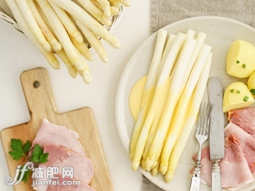 1、蘆筍去掉硬根以及底部較老的外皮。將處理好的蘆筍放入沸水中汆一下,取出,用冷水沖涼,待用。