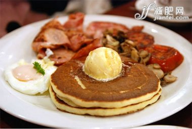 推薦早餐減肥食譜:番茄培根土豆餅+豆?jié){+香蕉+紅棗+杏仁